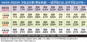 令和5年方位除け表 - 埼玉厄除け開運大師 - 日本三大厄除け開運大師