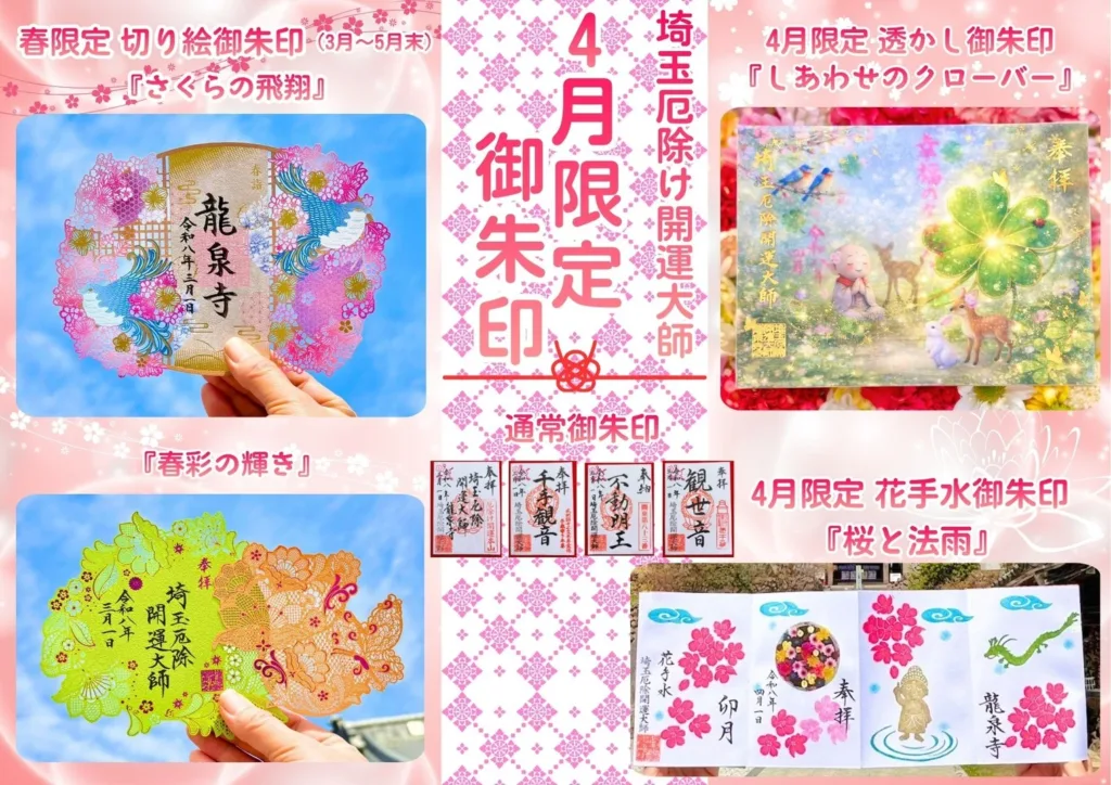 切り絵御朱印発祥の寺として有名な埼玉厄除け開運大師では、限定切り絵御朱印(3か月ごとに変更)や、様々な種類の人気御朱印を扱っています。