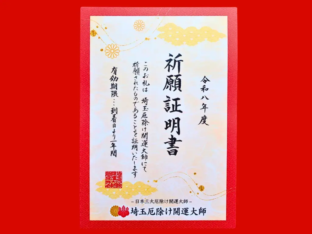 厄除けと同時に開運のご利益をいただける埼玉厄除け開運大師のお札を授かることができて本当によかったです。