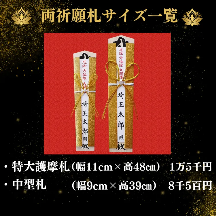 両祈願札は、特大・中型の2種類の大きさが選べます。