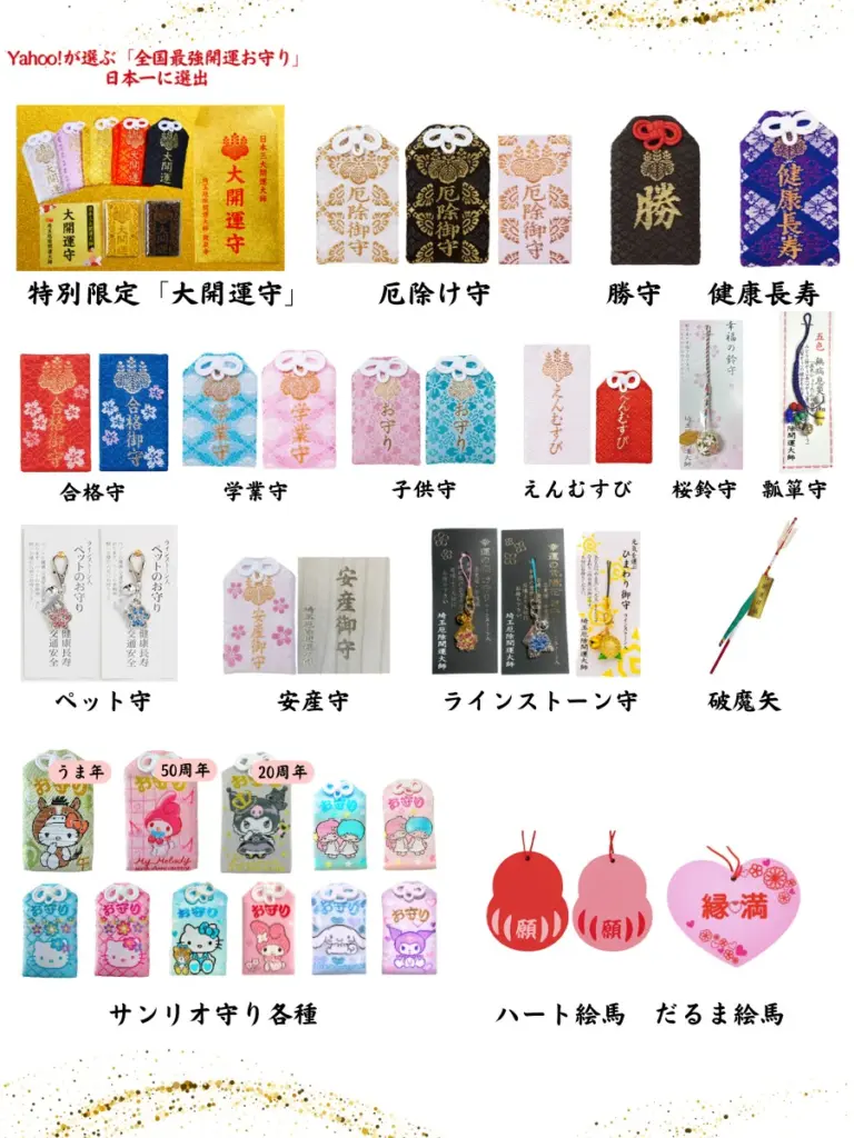 大開運守り、厄除け守り、健康長寿守りなど、各種お守りの授与も行なっております。