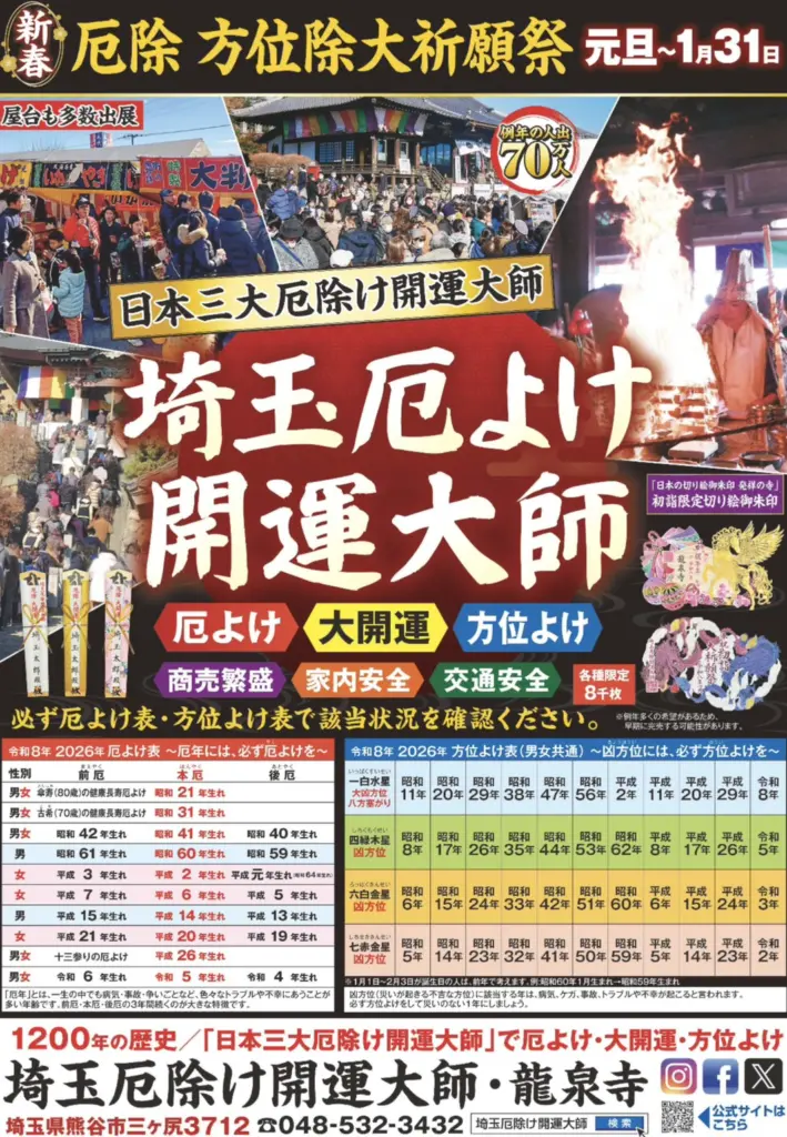 厄よけ、方位よけ、大開運のご祈願は日本三大厄除け開運大師の1つである、埼玉厄除け開運大師へご参拝ください。