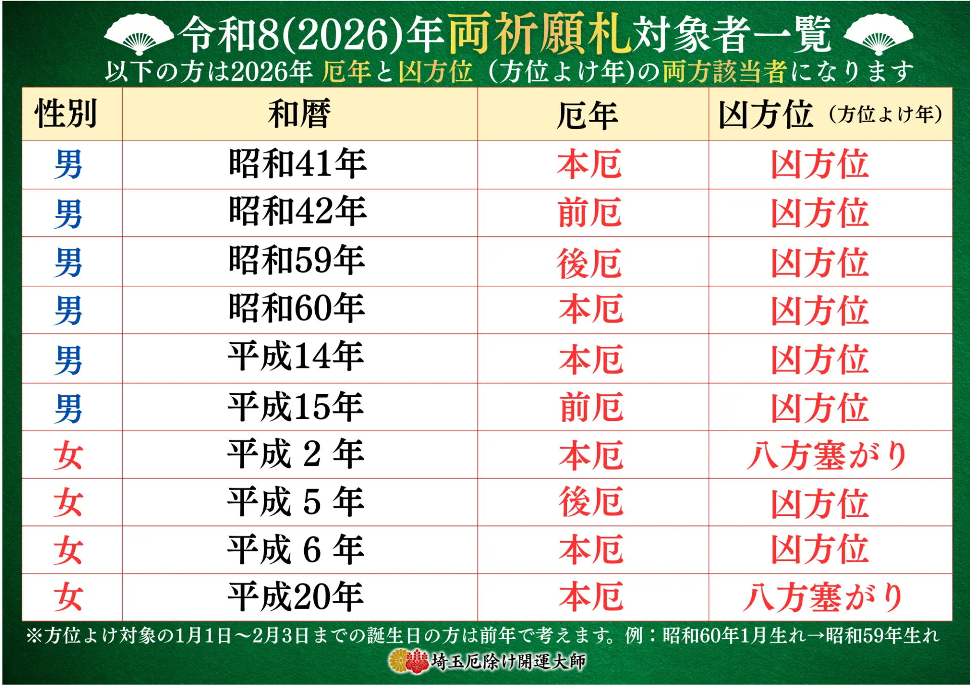 2026年 厄年・凶方位の両方に該当する方