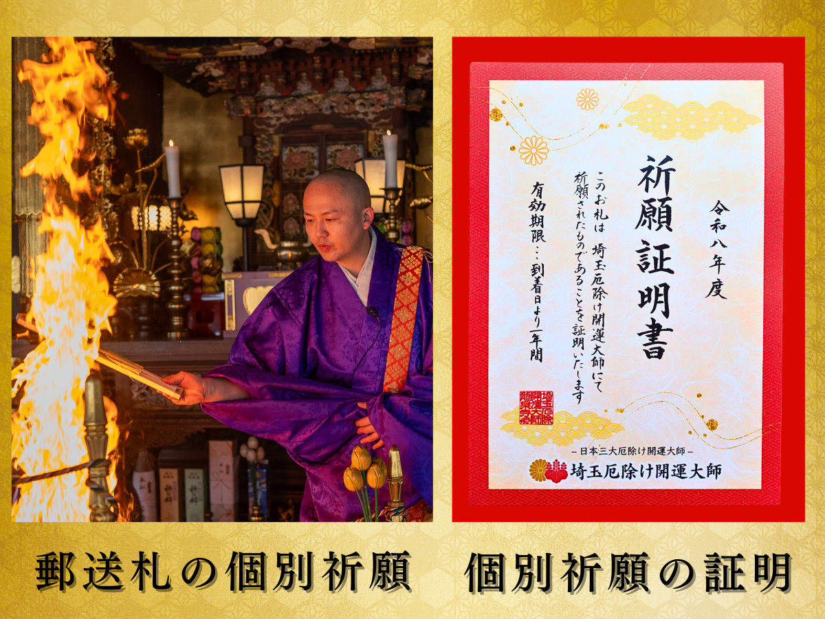 さらに、実際に埼玉厄除け開運大師で行われている特別作法をご自宅で行っていただくことで、日本三大厄除け開運大師のさらなるご利益を授かることができます。